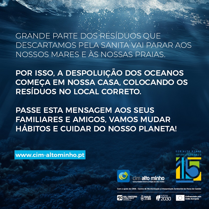 A Comunidade Intermunicipal do Alto Minho (CIM Alto Minho) continua a celebrar o seu 15.º aniversário e, em junho, lança uma campanha de sensibilização voltada para a limpeza das praias e dos oceanos, intitulada "COMECE A LIMPAR A PRAIA EM SUA CASA!". Esta iniciativa, promovida pela CIM Alto Minho com o apoio do CMIA - Centro de Monitorização e Interpretação Ambiental de Viana do Castelo, visa conscientizar a população sobre a importância de adotar bons hábitos em casa para proteger o meio ambiente e o nosso oceano e praias.