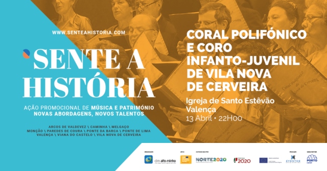 O Coro Polifónico de Vila Nova de Cerveira ficará responsável pela interpretação do repertório alusivo à Quadra Pascal, bem como à estreia de uma das obras encomendadas pelo projeto "Sente a História” inspirada na mitologia do Alto Minho: a Lenda da Porta do Sol (cuja história e letra podem ser conhecidas aqui: https://senteahistoria.com/2018/04/05/lenda-da-porta-do-sol-valenca/ ) com música de Telmo Marques e letras de Augusto Canário).
